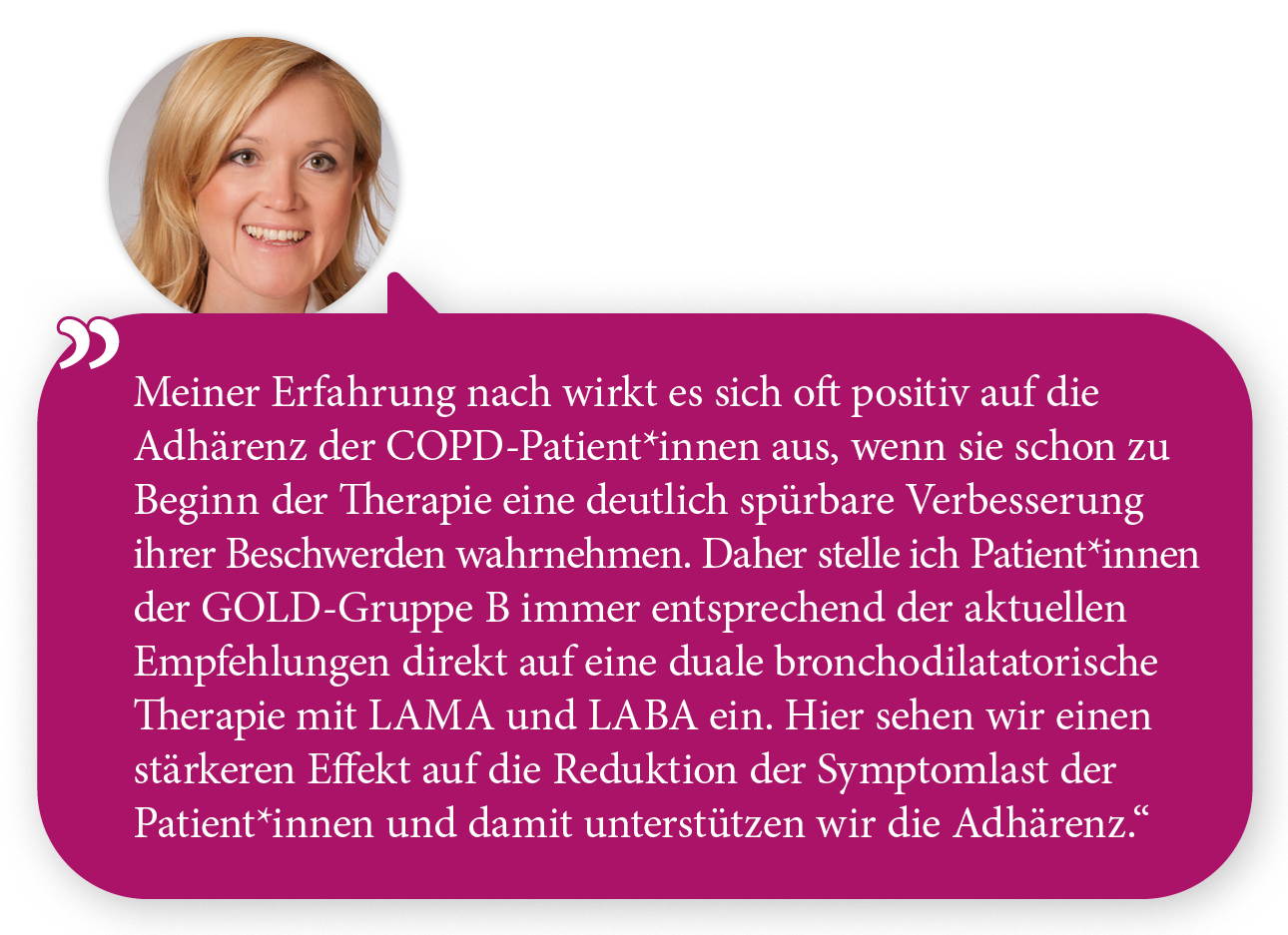 Auch die wirksamste Therapie kann nur helfen, wenn sie regelmäßig und korrekt angewendet wird. Prof. Dr. med. Kathrin Kahnert legt in der Praxis einen hohen Stellenwert auf eine ausreichende Therapieadhärenz gleich zu Beginn der Behandlung: